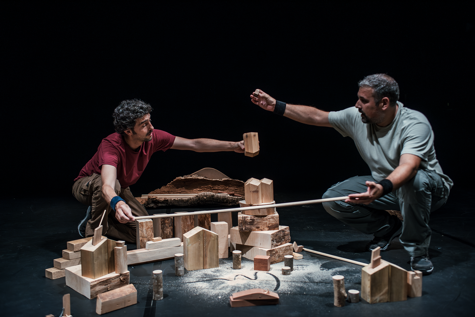 Tumbalafusta es una propuesta de teatro familiar que reúne a la compañía La Ruta 40 y a dos creadores escénicos excepcionales: Pau Matas Nogué, un dramaturgo que ha escrito piezas como Travy, -además de trabajar con el sonido y la música- y un apasionado de la poética de los objetos, Xavier Bobés.